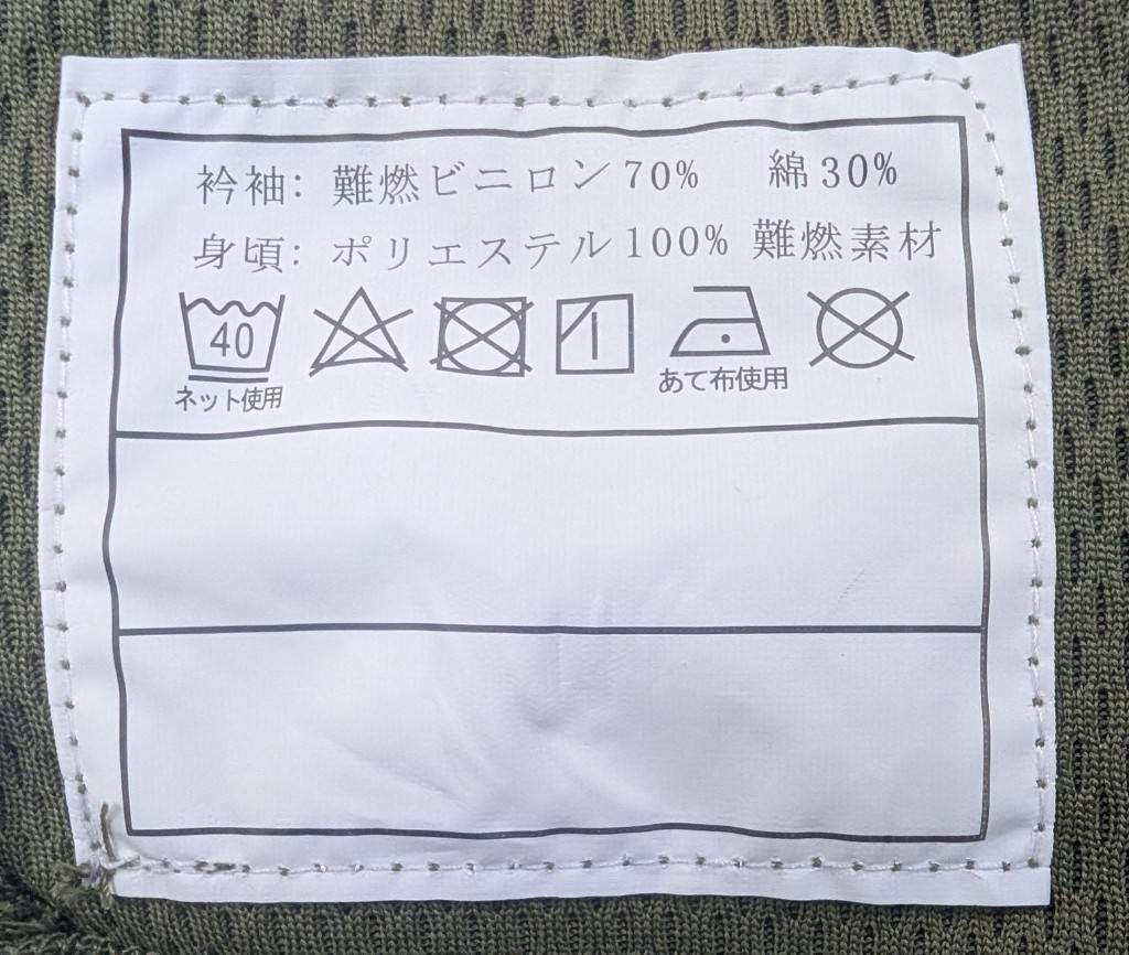 衿袖:難燃ビニロン70% 綿30%